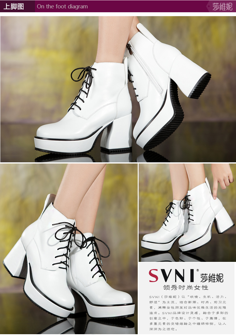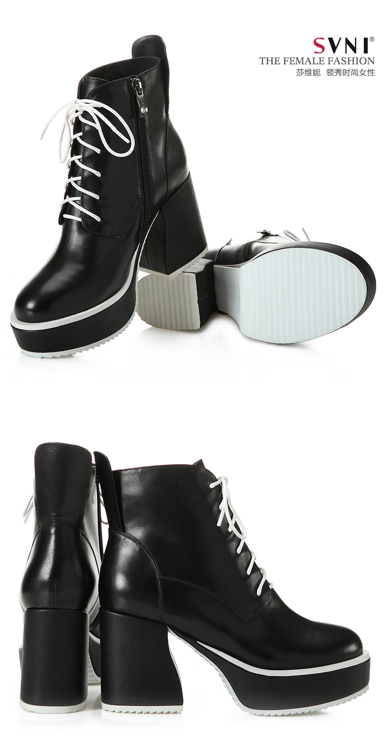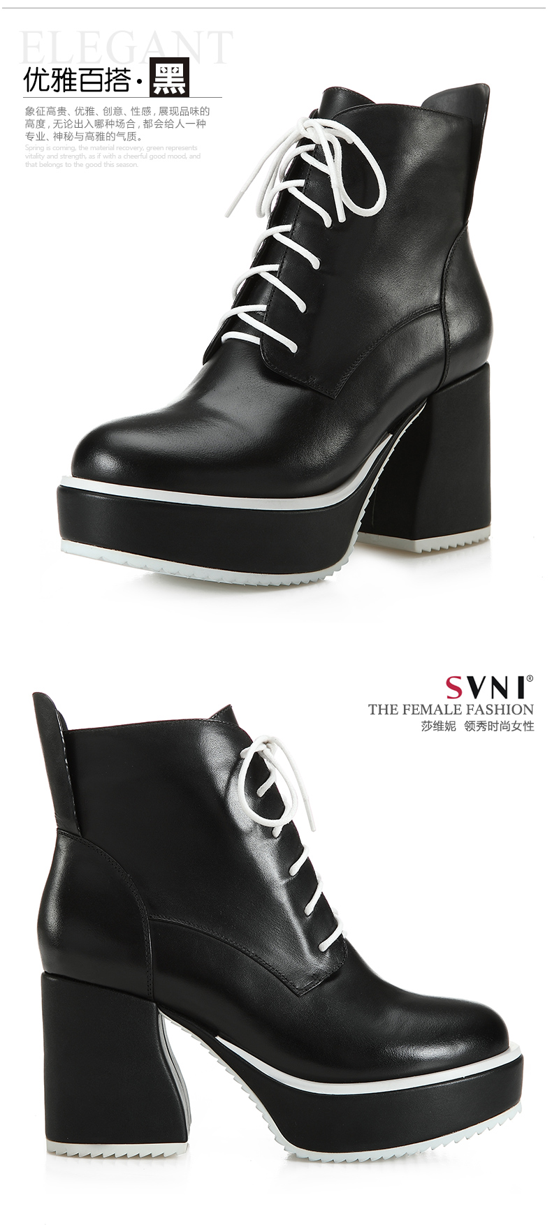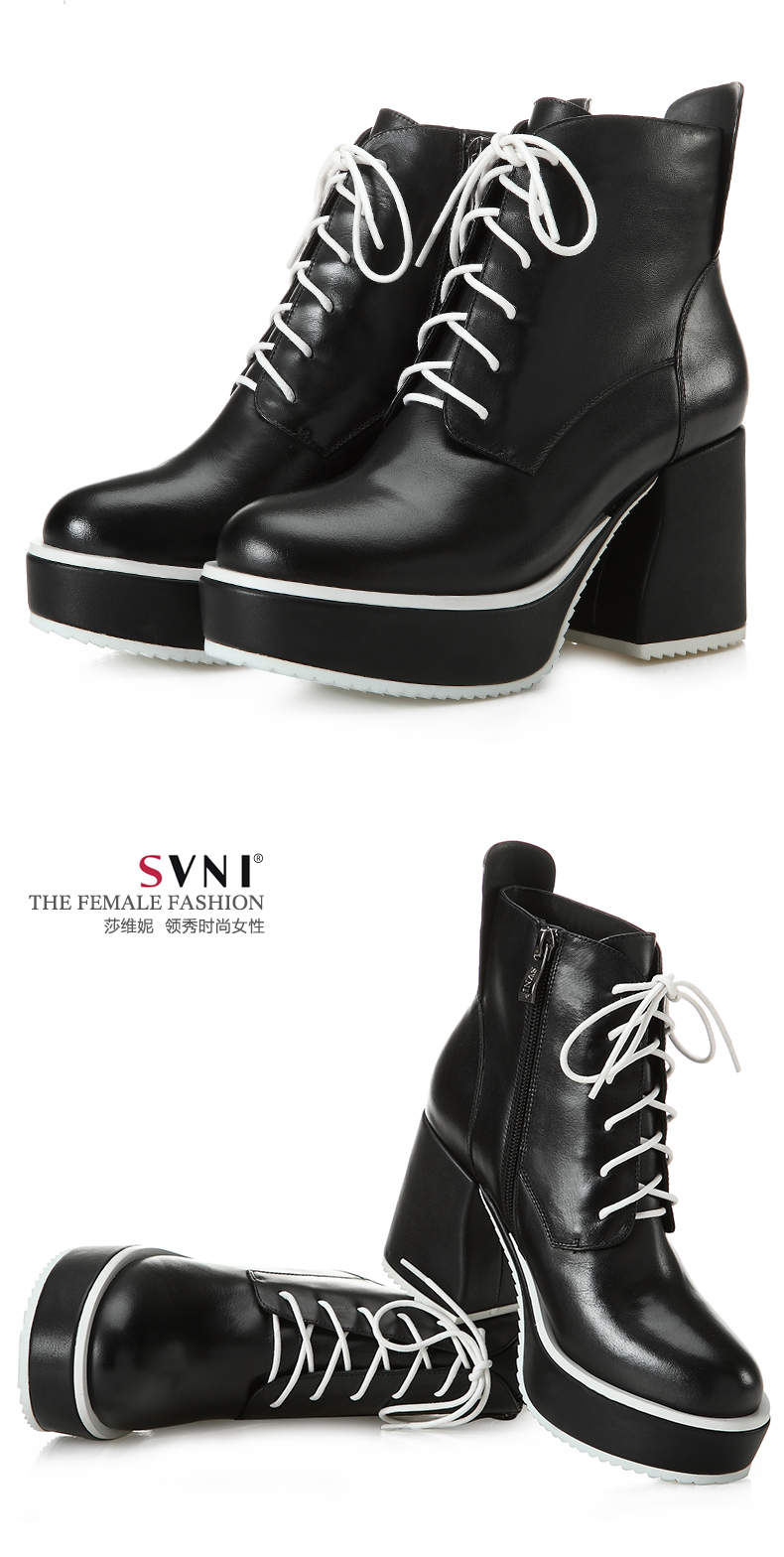 svni/莎维妮 2013新款冬季短靴 真皮粗跟女靴 英伦時裝靴子897-95