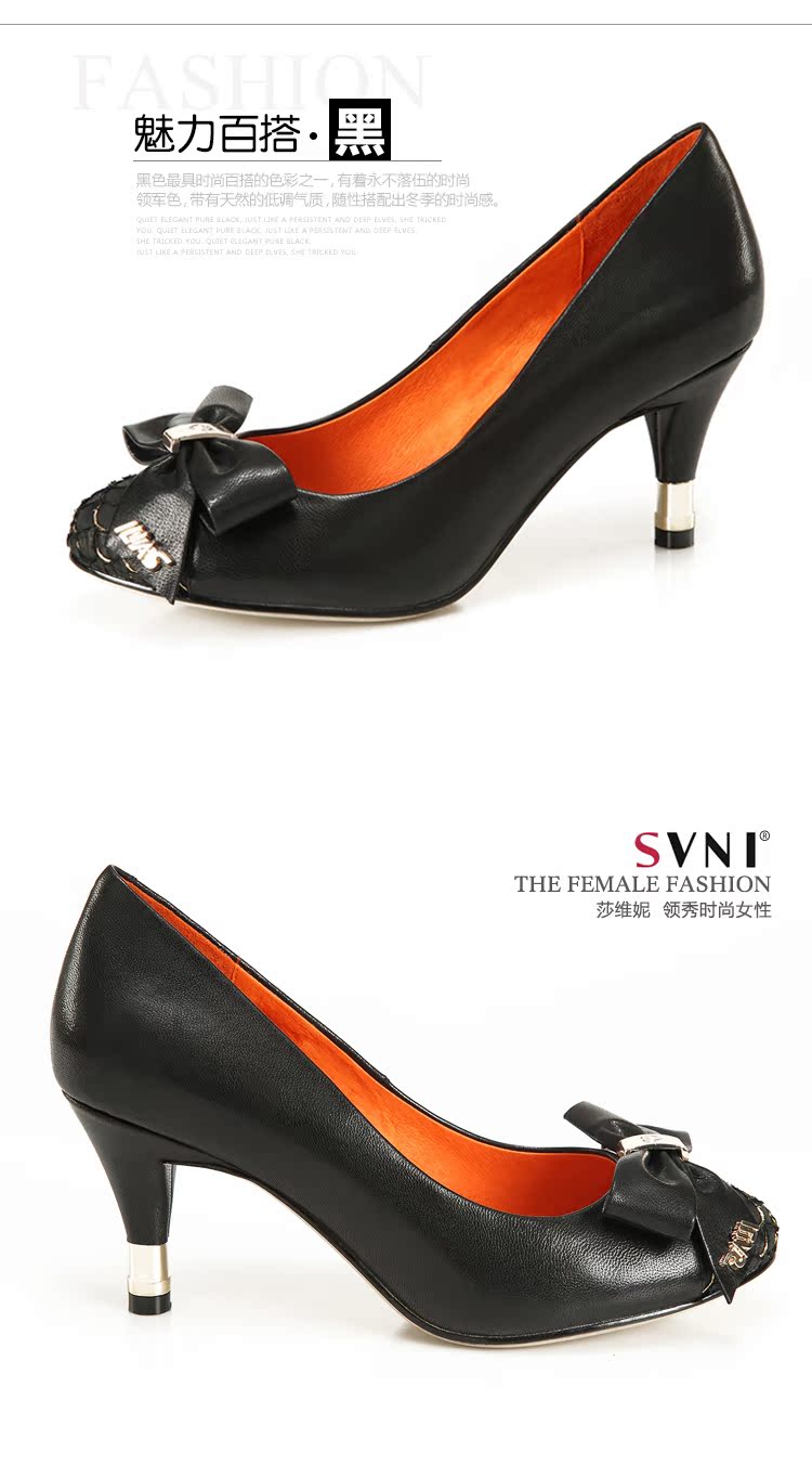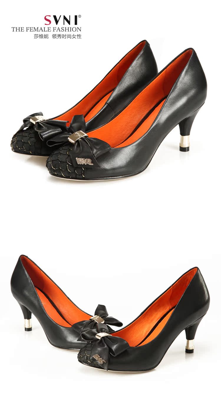 svni/莎维妮 2013新款女单鞋 羊皮蝴蝶结高跟OL鞋尖头鞋子899-102