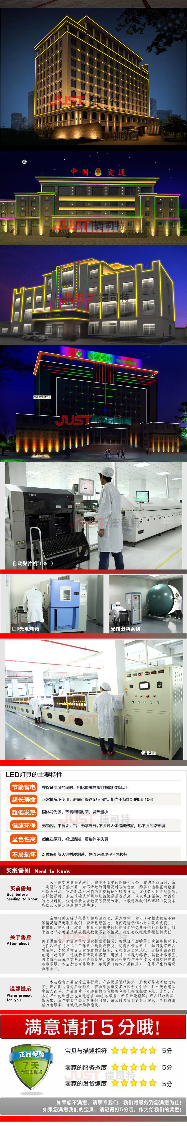 光源:台湾 光通量:1440LM 色温:2700-6500K 寿命:>50000小时 发光角度:45/60/90 工作温度:-40—50 防水等级:IP65 质保期限:2年