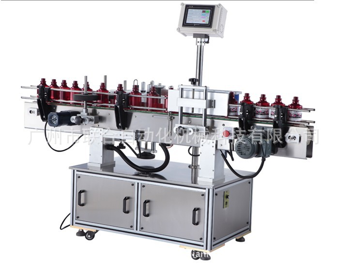 l 全自动立式贴标机操作简便,首先,把物料放入输送带里,然后插上电源,接着旋转按钮,设备通电,电源指示灯亮,轻轻点击一下 运行开关菜单 整台设备就以进入生产状态,物料经过落料轮,依次被有序分开,电眼感应到信号马上发出指令给PLC,,PLC发出指令给电机,标签出来,正好粘贴在物体表面 ,经过卷标装置,可以把标签完整的贴在物体的表面,从而就以完成了整个生产流程。