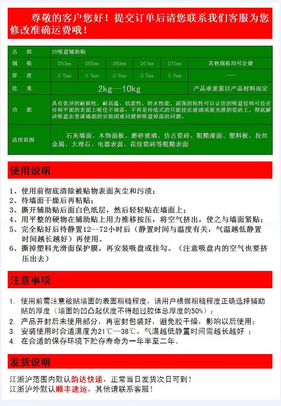 有了吸盘辅助贴您不需为吸盘挂钩的掉落而烦恼了。有了辅助贴可以让您的吸盘挂钩可挂在任何平面的表面上吸住不掉落,不再是传统式的只能挂在玻璃或很光滑的瓷砖上。彻底解决吸盘在普通墙面的安装困难问题和吸盘掉落的问题。
