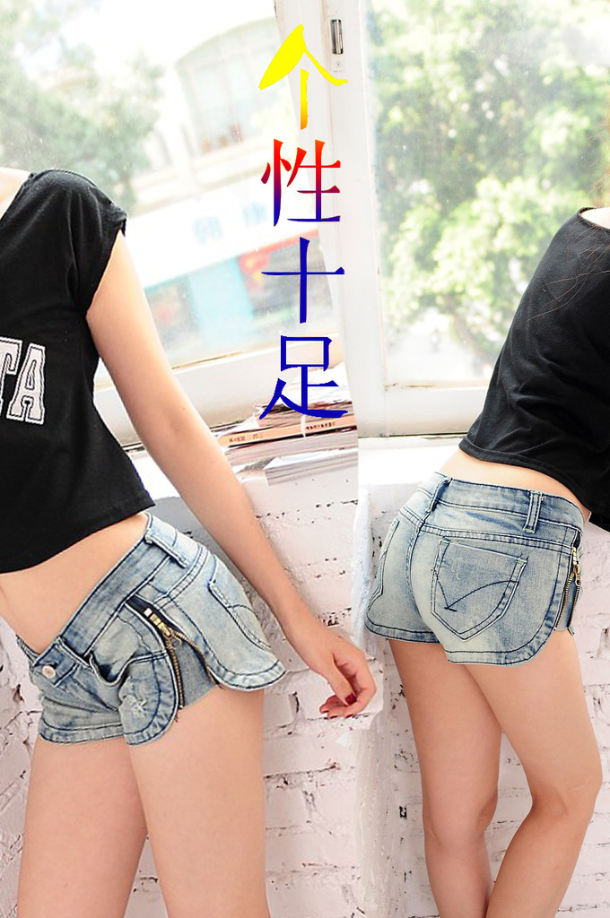 韩版潮夏装复古新款侧拉链修身显瘦低腰牛仔短裤女夏装显瘦热裤
