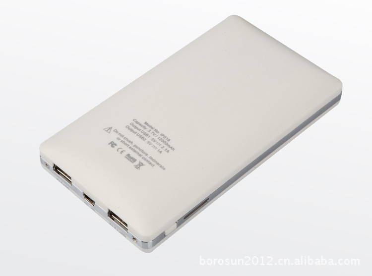 ◆聚合物电芯:超过500次循环使用寿命,安全可靠; ◆两个USB输出口,可以同时提供2.1A和1A的大电流给数码产品充电 ◆充电迅速,低功耗,电量持久; ◆安全可靠:锂离子聚合物电池有更高的安全性和稳定性,产品内部智能控制电路的多重保护(充电控制、充电保护、放电保护、过载保护、过压保护、短路保护)解决了您使用产品的后顾之忧; ◆智能省电功能,在没有外接充电设备的时候,本机30秒后自动关闭输出并停止工作; ◆高效电量保护:小于120UA(微安)的静态耗电量。充满电后放置一个月时间,仍然具有90%以上的电量; ◆简洁硬朗流线形精品设计,钢琴烤漆,彰显高贵 ◆移动电源自带数码百分比显示,让您时刻了解剩余容量;位于侧面的冷光显示电量大小。当4格灯同时亮时为100%电量,当三颗灯亮时为75%电量,当两颗灯亮时为50%电量,当只有一颗灯亮时电量为 25% ◆附带优质充电延长线,提供8个接头满足各手机和数码用电设备的要求(兼容IPOD iphone ipad1 ipad2 三星 诺基亚 索尼 HTC 黑莓手机等) | 产品规格 | ◆电芯类型:聚合物锂电池 ◆输出:DC 5-5.5V 800 mA(MAX)和2200mA(MAX) ◆输入:DC5V 800mA(MAX) ◆电芯容量:12000mAH ◆充电时间:约8.5小时 ◆产品规格: 138*76*15mm ◆重量: 247 克 ◆使用温度:-10℃~+60℃ ◆产品可选颜色:黑色 白色 |