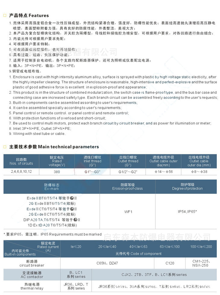 二.本产品为复合型模块化结构,开关腔为隔爆型,母线腔和接线腔为增安型,可根据用户要求,对各回路进行自由组合;