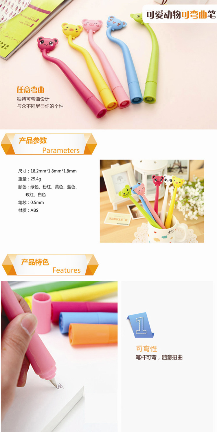 卡通造型可弯曲笔,可作广告促销礼品、赠品等等,可印LOGO,厂家直销,自有注塑设备,颜色可定做。款式可以根据你的要求去开模定做!