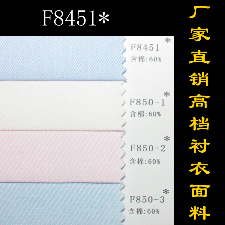 名称:面料 成分及含量:60棉40涤 纱支:80S/2*80S/3 密度:144*84 幅宽:145cm 主要用途:服装用布 具体用途:衬衫 克重:115克 货号:F8451 |