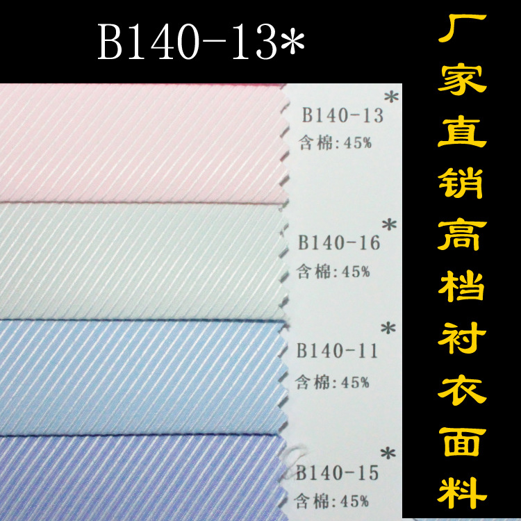 名称:面料 成分及含量:35棉65涤 纱支:45*46 密度:144*76 幅宽:145cm 主要用途:服装用布 具体用途:衬衫 克重:115克 货号:B140-13 |