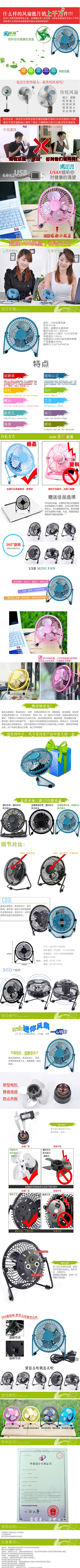 欢迎批发正品 “欧伟工艺”产品 版权所有,翻版必究! 【名 称】:由 噻USB风扇 【货 号】:ZY-06 【产品尺寸】 :135*78*135MM 【颜 色】 :黑、红、绿、黄 【材 质】 :金属框 【功 率】:2.5W. 【电 压】:DC5V. 【装箱数量】 :36/pcs 【一箱毛重】 :16kg 【外箱尺寸】 :62*32*48cm 【产品描述】 : 新研发产品---USB 风扇。 金属外壳,外观精美小巧,上下仰俯角 度可调整,功率低电流小,不用担心因为电流过高烧坏电。 厂家直销可来样定做! 义乌市欧伟工艺品有限公司是集研发, 设计,生产,销售一体的创新型企业,旗下由噻(USAY)品牌致力于打造中国USB风 扇第一品牌,微环境调节相关产品的第一品牌,是白领上班族改善工作环境的最 强品牌,以超强的创新设计能力占领国内外市场。公司设计的USB超静音风扇以其 实用性及经典的外观深受白领的欢迎。 USAY重金投入,培养人才,组 建专属于USAY的设计、研发团队。每一位研发人员都是USAY精心挑选,用心培育 的专业人才。他们有敏锐的市场洞察力,能够及时掌握市场动向,研发出最迎合 市场需求的产品;他们有三过家门而不入的敬业精神,对产品研发的每一个环节 都有锱铢必较的精神,尽力做出最完美的产品;他们有丰富的专业知识,并能熟 练运用于实际操作中,保证每一款产品都性能稳定、设计前卫、功能强大。 USAY拥有2个大型生产车间,百名生产一线员工。所有产品均为流水线作业 ,每个环节都严格把关,最大限度降低次品产出概率,使消费者买的放心,用的 舒心。USAY对品质的管理相当严格,每一批成品都经过严格把关,决不让任何次 品流入市面,这就是USAY对品质的执着追求! 感受USAY的魅力,专注健康的价值 ! 本公司销售多种优质产品,价格公道,产品质量 优质,欢迎新老客户来电具体详谈。我们的宗旨是“小胜凭智,大胜靠德 ”,我们本着“诚信第一”“专业专注”、“ 服务一流”的态度立足。义乌市欧伟工艺品有限公司是专注于设计、生产小 空间环境调节的相关产品的企业,致力于打造小空间环境调节第一品牌。目前旗 下有专业风扇生产线三条,日产10000台USB小风扇,是国内最大的铁艺USB风扇生 产厂家。电机生产线2条,日产10000台电机,达到风扇电机自足。另外加湿器, 空气净化器,办公取暖器等深受广大白领的欢迎。 热诚欢迎各界前来参观 、考察、洽谈业务 产品售后说明: 本产品三个月接受一次有质量问题 的产品,即购买日起的第三个月,可将有质量问题的产品一次性发往本厂进行调 换货处理,运费由买家承担,本厂不接受到付的返厂产品。 |