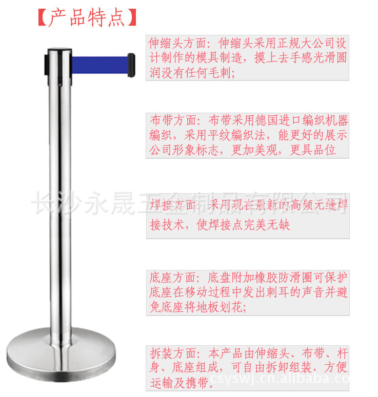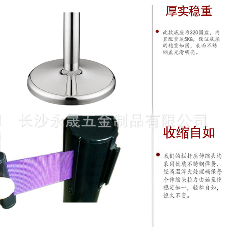 拉丝不锈钢栏杆座,伸缩式围栏,警戒线隔离带,栏杆厂家