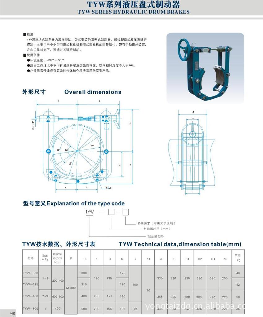 焦作市永泰制动器制造有限公司是集研制、开发、制造、服务为一体的制动器专业生产企业,年设计生产能力2万台,产值2000万元。 公司南临黄河、北依太行,占地面积一万平方米。先进的技术力量、完善的检测手段、严格的质量保证、优质的售后服务、不懈的品质追求为客户提供高质,高效的标准和非标准的制动器产品。 公司生产主要产品有:YWZ--YWZ13系列电力液压鼓式制动器,ZWZ、ZWZA-C、MW系列电磁鼓式制动器和液压型、电磁型、气动型盘式制动器,矿用盘式制动器及其上述产品的驱动装置,BEd系列隔爆电力液压推动器、Ed系列电压液压推动器、YT1系列电力液压推动器、BYT1系列隔爆电力液压推动器等。 产品取得国家起重运输机械产品质量监督检验检测中心颁发的《产品质量认可证书》,《型式试验合格证书》,通过ISO《质量管理体系要素》.“品行天下、共创双赢”是我们企业坚守的经营理念,我公司的产品现在为国内几百家企业提供着服务,涉及机械、冶金、港口、码头、电力、铁路、水里、化工等企业。“质量第一,诚信第一,服务第一”是我公司遵循的宗旨,竭诚欢迎各界友人惠顾与合作,携手共进,共创辉煌!