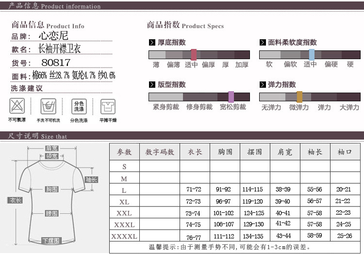 然而因每个人的身型不同,个体感受也有差异,对于尺码我们只提供建议,具体尺码选择请根据个人身型的实际情况来选购。