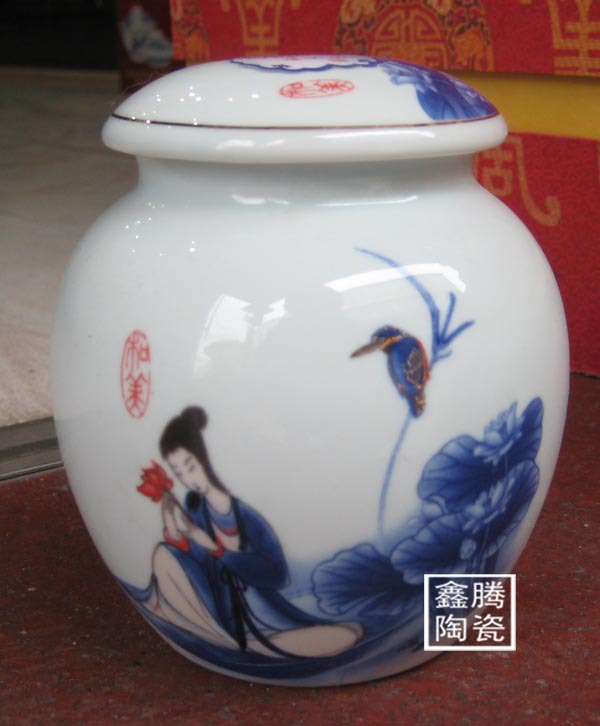 QQ:1637698949手机:18979804799(周献龙)网址:景德镇陶瓷厂家生产供应陶瓷茶叶罐,青花瓷茶叶罐,中国红茶叶罐,陶瓷密封罐,陶瓷食品罐,各种药材陶瓷密封罐,制作工艺,采用优质的高岭土,1300度高温烧制而成,完全瓷化的陶瓷制品。景德镇高温陶瓷茶叶罐有以下优点: 1:名茶配名瓷,用享誉世界的景德镇陶瓷作为茶叶的包装,本身就是一种高档次的体现; 2:陶瓷茶叶罐的设计和画面可以按照客户要求生产处理,烧制上客户的商标,使得企业形象提升; 3: 陶瓷茶叶罐的制作精美,色彩艳丽,和那些低档纸盒、玻璃瓶包装容易形成强烈的对比; 4:陶瓷茶叶罐有防潮、防水效果,是其他玻璃、金属食品包装最佳替代品; 5:精美的陶瓷茶叶罐容易被接收,保存收藏,储藏食品。景德镇鑫腾陶瓷经营部:作为一家植根与千年瓷都景德镇的陶瓷企业,已经发展成为一家集产品设计、开发、制造、包装等整套工艺流程为一体,具一定规模的陶瓷企业。我们生成加工的陶瓷茶叶罐等系列产品全部为高级工艺美术师精心设计,经过高温烧制而成的精美陶瓷艺术礼品,永不褪色变色。选择鑫腾陶瓷,品质的保证;欢迎各界有识之士光临工厂参观指导!(出厂价供货,价格最优!)专业品质、专业设计:景德镇鑫腾陶瓷经营部。【 陶 瓷 密 封 罐 :茶叶罐 密封罐 咸菜罐 食品罐 药罐 储物罐等 】我司承接各种形式的陶瓷专业定制。(LOGO、公司名称、人名、年月日等等)