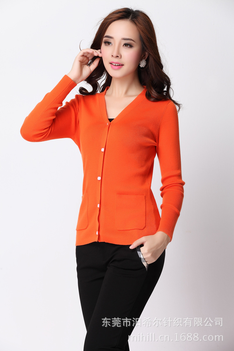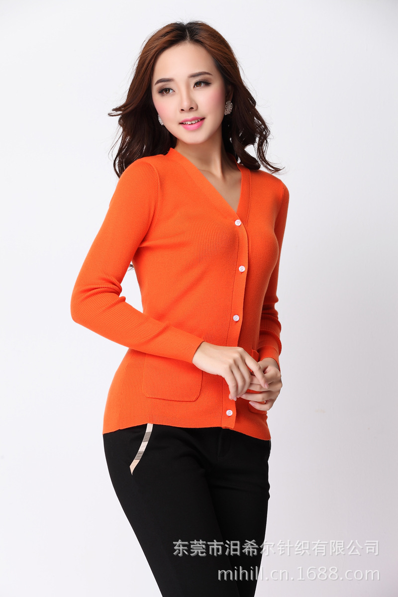 汨希尔 年秋冬爆款长袖V领单排扣纯色羊绒修身高档女装针织衫开衫