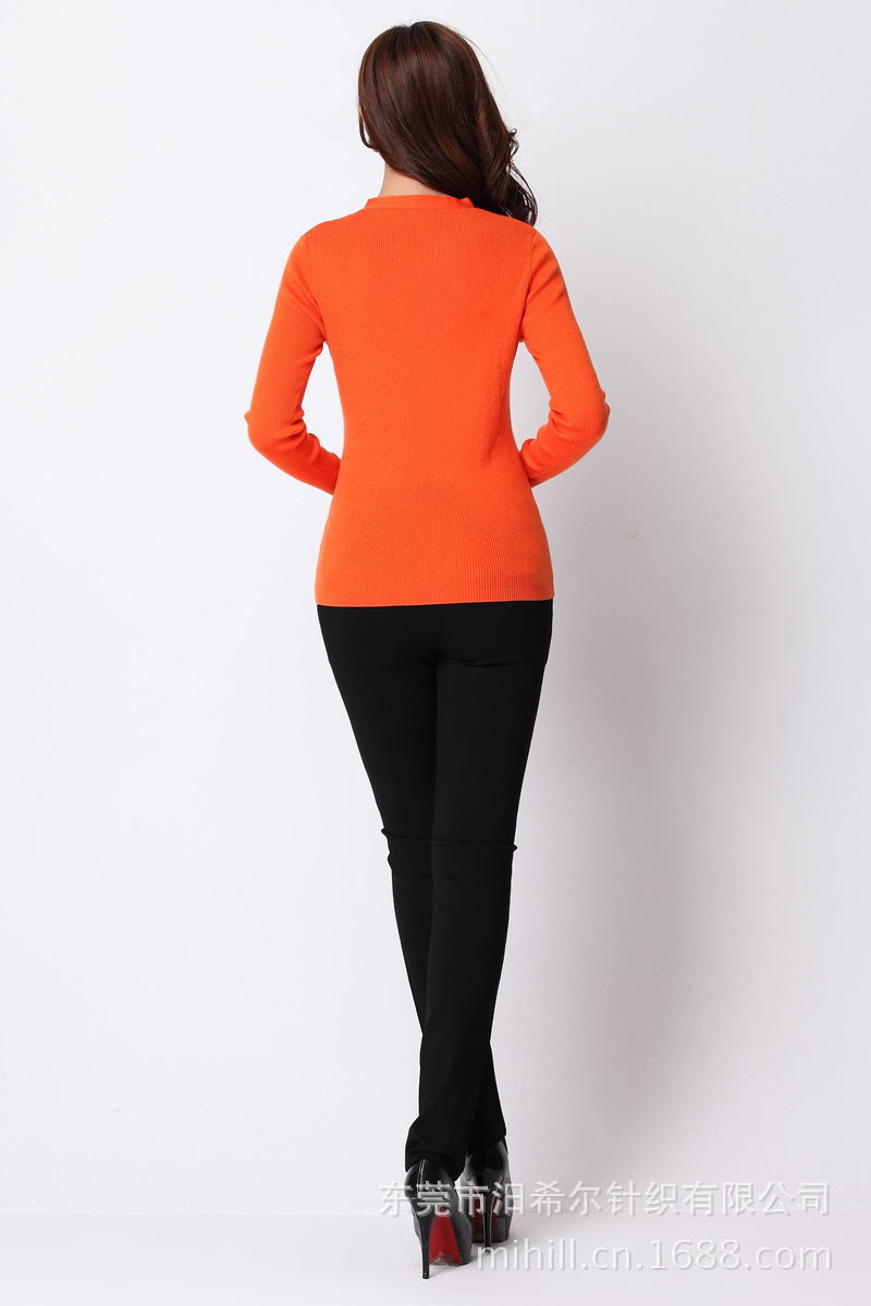 汨希尔厂家直销 新品女装淑女套头圆领公主袖高档女针织衫 撞色