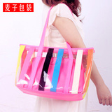 |  | | 包邮 2013新款透明包糖果色条纹沙滩包塑料包果冻包单肩女包包潮 | | 优惠价:49.0 | |