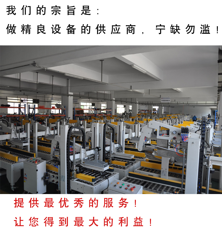 根据我公司多年来对封箱机专业设计与制造经验,我们可以为您提供最专业的包装机械技术咨询,专业的设计,为客户量身定制专用的包装机械,以满足不同客户的需求。机动化的维修团队,为您提供技术支持,解决封箱机问题。优良的品质,热忱的服务,品牌的承诺,将让您无后顾之忧。