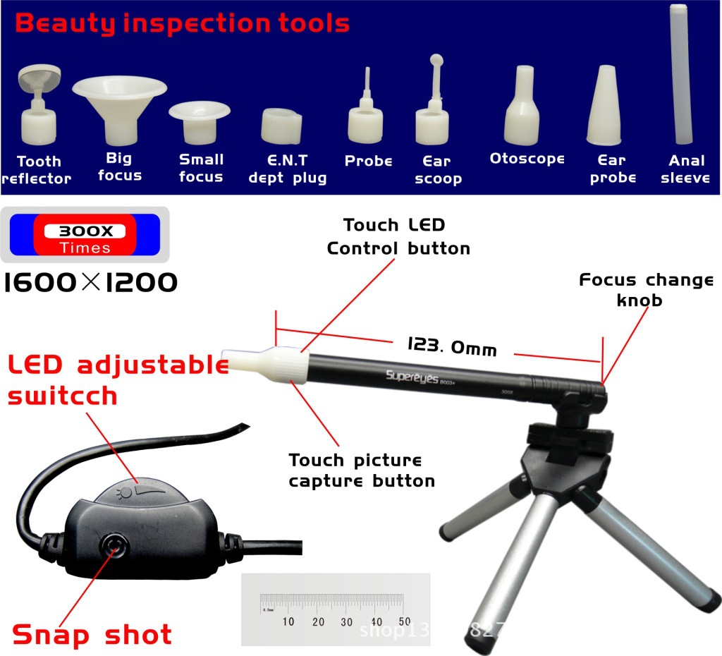 用作:耳道、耳膜、眼睛虹膜、牙齿检查、分析及诊断、在实验室进行显微镜检测及分析标本解剖或培植分析,美容、美发、皮肤检查教学。