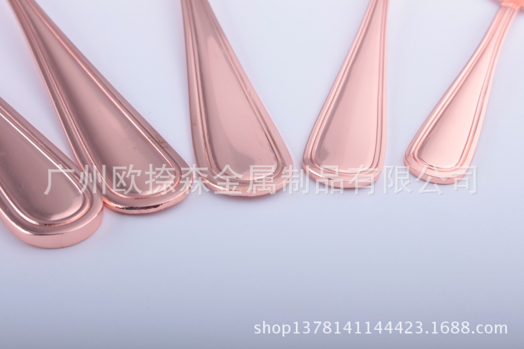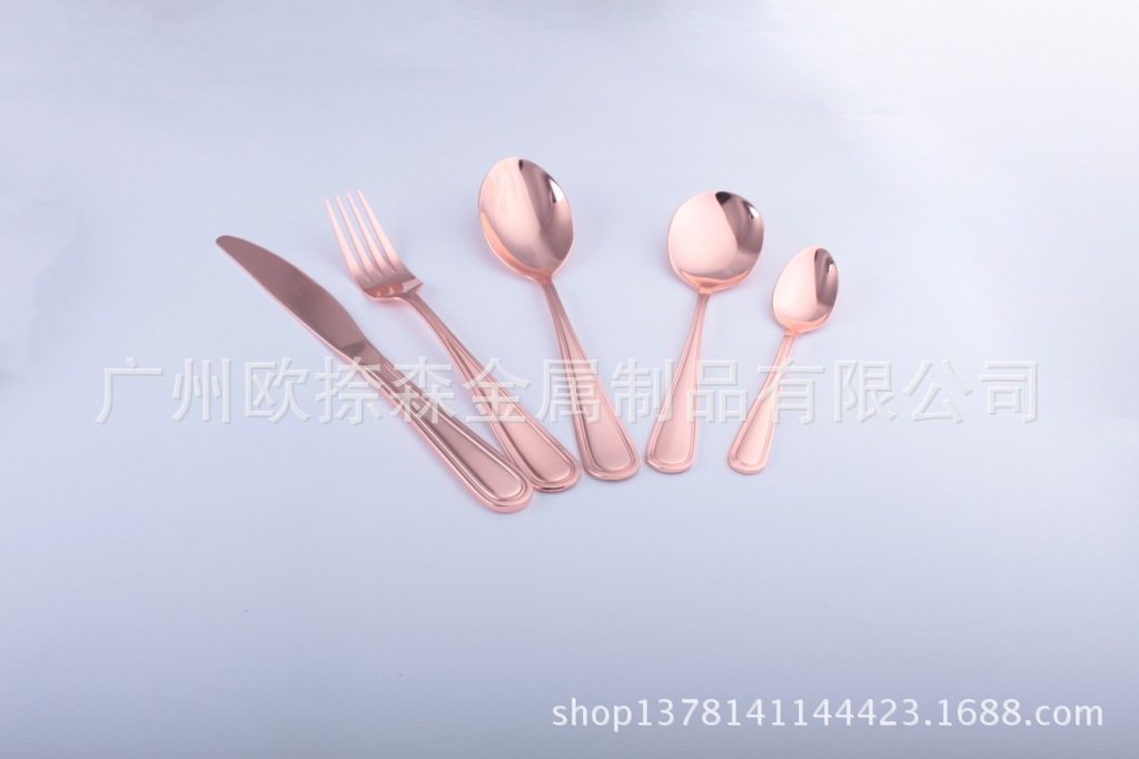 广州欧捺森金属制品有限公司不锈钢餐具采用优质不锈钢材料、加强型轨道,结构紧密,手感沉甸,刨光工艺使用大型刨光机和全自动沙带整形机,不锈钢刀叉产品经过精密数控机械的雕琢和二十五道工序以上的纯手工抛光研磨,不锈钢刀叉确保了产品每个部件无丝纹、无疵点、无气孔,细腻如丝,光亮如镜,更是恒久耐用.