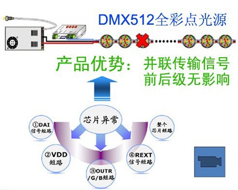 2.DMX512并联传输信号全彩点光源产品具有高抗干忧、高抗静电的优点.