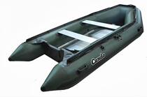 充气船艇的特点:1.整艇的充气浮力胎被隔成多个独立气室,分隔设置有很高的气密性,在个别气室破损时,其它部分仍保持足够浮力,相邻两个气室甚至更多气室同时破损时,整艇仍有一定浮力!2.整艇具有很好的抗沉性,在整艇已处于最大载重(使用安全上的限定)时,即使整个船艇灌满水时,仍浮于表面!3.由于充气船艇两侧有浮力胎,艇体横向倾侧入水的可能程度很小,再加上产品设计制造中有专门的稳定性测试的保证,因此在最大载重即使还有较大的风浪)时,它也不会横向倾覆!4.充气船艇与木质、铝合金、玻璃钢小艇相比较,充气艇可拆解保存和灵活转移,并且备良好的抗撞击缓冲的作用,此处由于充气船艇十分轻盈,无论以同样马力或同样速度相比较,它在速度上和油耗经济方面都优于其它小艇!P.V.C材料:信光CANDO充气船橡皮艇布采用韩国1000丹尼聚酯纤维织物。其双侧均有P、V、C特别材料涂附。此材料在水中完全做到气密、抗磨损耐用、耐盐碱和日光照射、具有高强度抗老化,我们承诺五年质量保证。粘接结构和胶:充气船艇的接缝是全部尺寸搭接缝内加强,由于良好的密封性。其可承受突然的外力冲击。为了获得更大粘合力,我们采用韩国进口P、V、C涂层专用聚氨酯胶,它具有高持久力并耐热、耐寒、耐胶水的性能。间 隔 膜:船艇内部的间隔膜不仅保护各个气室的安全密封,而且也可以灵活的调节各个锥体部分的压力平衡。V型龙骨设计:新设计的充气龙骨,更方便于提高充气艇的速度,在快速操纵上,V型龙骨为充气艇提供了极好的方向控制和灵活性。可拆解,易于保存,灵活转移,并可快速在急需场合投用,艇体边有充气浮力胎,可极大地避免在风浪中倾覆危险,有良好的抗撞击缓冲作用,维修简易,保养工作量较小。