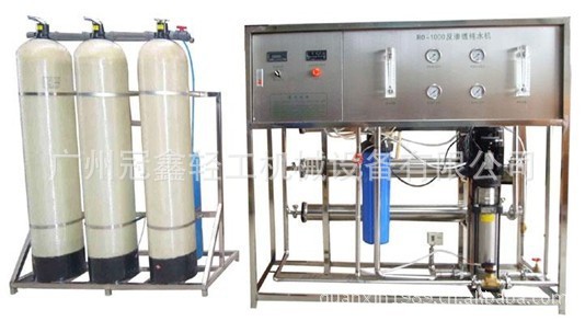 第四级预处理系统 采用5微米孔径精密过滤器使水得到进一步净化,使水的浊度和色度达到优化。保证RO系统的进水要求。纯净水设备主机系统采用反渗透技术进行脱盐处理,反渗透膜孔径仅为0.0001微米,能去除有害的可溶解性固体及细菌、病毒等,脱盐率达99.6%以上,生产出符合国家标准的纯净水,主机部分包含保安过滤器、高压泵和反渗透膜,保安过滤器为以上的第四级预处理系统,高压泵是主机上的核心设备之一,为反渗透膜元件提供足够的压力,以克服渗透压及运行阻力,满足装置达到额定的出水量。臭氧杀菌系统臭氧具有强氧化性,有四大功能:灭菌、氧化、脱色、除味,用于水的消毒时,浓度在4mg/l时,0.5-1分钟即可杀灭全部细菌,同时臭氧溶于水后形成富氧水,保证了水的纯鲜,又不失水的活性。