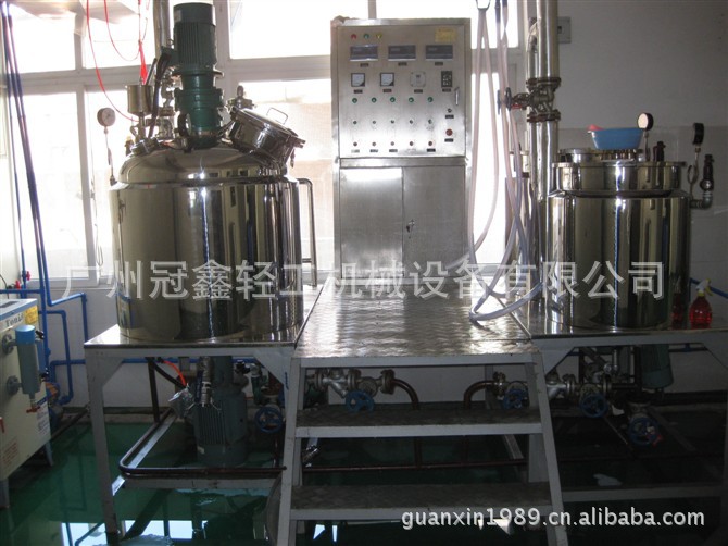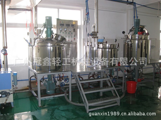 本设备是集真空脱泡,搅拌,均质,加热,电控等功能于一体,是生产中高档膏类,蜜类的理想设备,本设备由真空均质乳化锅,油相锅,水相锅,操作平台,真空系统,压料系统等组成。