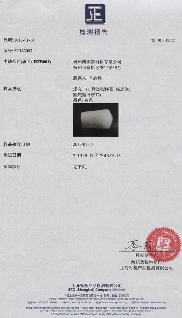 c) 杭州博宏新材料纺织阻燃产品质量国内国际领先