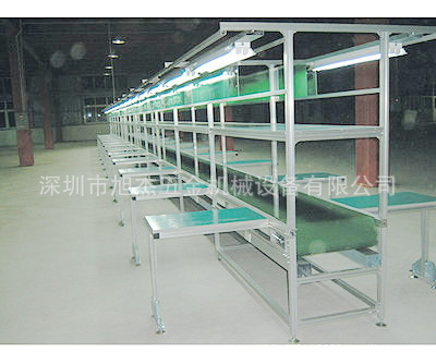 飞机工作台流水线的特点是每个工作站是独立设置,方便员工独立操作,其线体用材有四种做法:一、不锈钢材质,特点是不会生锈,气质高雅,体表光亮;二、工业铝型材质,特点也是不生锈,体轻高贵,整体鲜明;三、优质铁方通材质,特点是表面喷电脑白烤漆,也不易生锈,经济实惠,造型美观;四、柔性管材质,结构新颖,拆装简单,外观养眼。客人可根据自己的意愿随意选材。工作台的尺寸可以根据客人的要求定做,工作台的做法有两种,一种是两个脚的做法,它的另一边固定在拉身上面;另一种是四个脚的做法,可以移动。