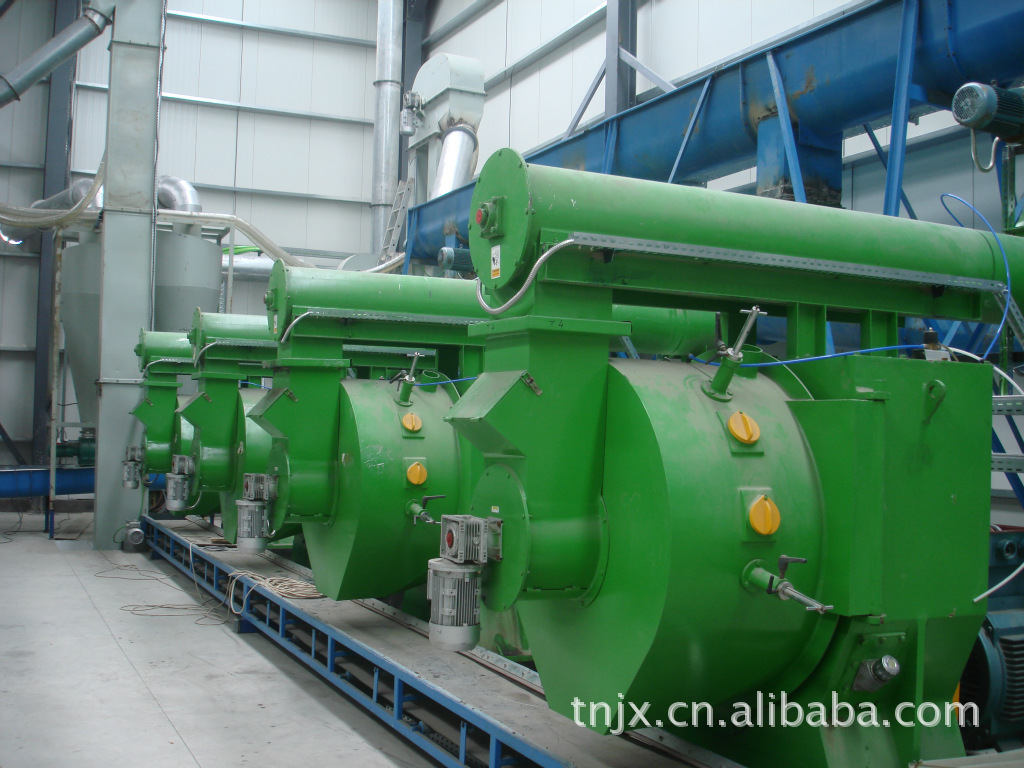 ●田农专利技术制粒机轴承和压辊使用闭路循环润滑系统,采用微电脑实时跟踪、监测、显示压辊、压制腔的运行的温度情况,彻底解决了压辊润滑靠经验润滑的难题,保障制粒实现连续生产. ●主动齿轮采用高精度齿轮传动,采用瑞典进口轴承,环模快卸式抱箍型,产量比皮带型提高10-15%左右. ●环模,压辊使用合金钢(不锈钢)锻造精加工,采用渗碳工艺热处理,渗碳层高达2mm,可最大化的节约生产成本. ●特殊设计的压制腔,延长模具寿命,同等型号、同等质量的模具前题下,寿命延长达70%左右。 ●田农专利技术的压制腔监控系统,解决因为非法操作带来的压制腔高温危害,有效防止压制腔内高温引起的粉尘爆炸和火灾隐患。 ●调质器、环模保护罩全不锈钢制造,防止长时间使用水蒸气的锈蚀破坏。 ●环模安全保护罩位控器与主机电器互锁功能,机械运转中,非法打开环模安全罩时,自动关闭主电机,防止调整运转的机械对人伤害。 ●特殊设计的制粒机过载保护装置,当制粒机过载或进入金属异物时,保护装置安全销自动断开、安全销位控开关切断主机电源,保护环模、压辊等不受严重伤害。 ●方便快捷的颗粒长度切刀,可以自由选择您所需用的颗粒长度。 ●全封闭式强制喂料机构,电机为整体试结构,安全性更高。 ●强制喂料螺旋下文设有快速排料口中,非法操作出现闷机时,可以快速打开排料口,防止闷机的发生。 ●田农人自行研发集成压辊注油装置,国内外同行独有专利技术,保障每个压辊充分得到润滑油,不会出现漏注现象。 ●特殊设计的主轴、空轴结构,无需担心主轴、空轴变形、断裂事故的发生。 ●超长压辊轴承使用寿命,使其寿命达极限至800小时以上。 ●采用大模数齿轮,设计参数是实际动力的数倍,齿轮寿命达十年。 ●特殊设计的箱体结构,是同种机型重量的一倍以上,赋于制粒机强劲的机械动力需要。 ●解决了箱体与齿轮材料膨胀系数问题,保证箱体与齿轮膨胀系数一致,机械时刻处在最佳传动状态下运行。 ●设有模具抛光物料快速入口,防止抛光物料浪费,防止抛光物料污染其它机械部位。 ●特殊设计的压制腔,对物料含水量敏感度低,物料含水量比同种机型高10%都可以正常制粒,从而节约物料烘干成本 ●压辊设计之时就优化选择了最大直径,可最大化的延长压辊使用寿命 ●特殊设计制造的环模,开孔高达13排孔,¢6-8有效开孔宽度高达135mm,是国内外同行的 1.8倍,有效降低模具消耗,降低生产成本。 ●田农制粒机环模,开有高达13排孔,开孔率是其它厂家同种型号的1.8倍,可最大化降低环模吨费用消耗,,此为田农专利,国内外无人能够效仿.。规模产能1万吨/年,可节约模具消耗15万元。 序号 | 名称 | 型号 | 主机功率 (kw) | 产量 (t/h) | 颗粒直径 (mm) | 环模直径 (mm) | 压辊数量 (只) | 1 | 制粒机 | MZLH420 | 90 | 1-1.5 | 6-8 | 420 | 2 | 2 | 制粒机 | MZLH600 | 160 | 2-3 | 6-8 | 600 | 2 | 3 | 制粒机 | MZLH800 | 320 | 4-6 | 6-8 | 800 | 4 | 4 | 制粒机 | MZLH1200 | 500 | 6-8 | 6-8 | 1200 | 4 |