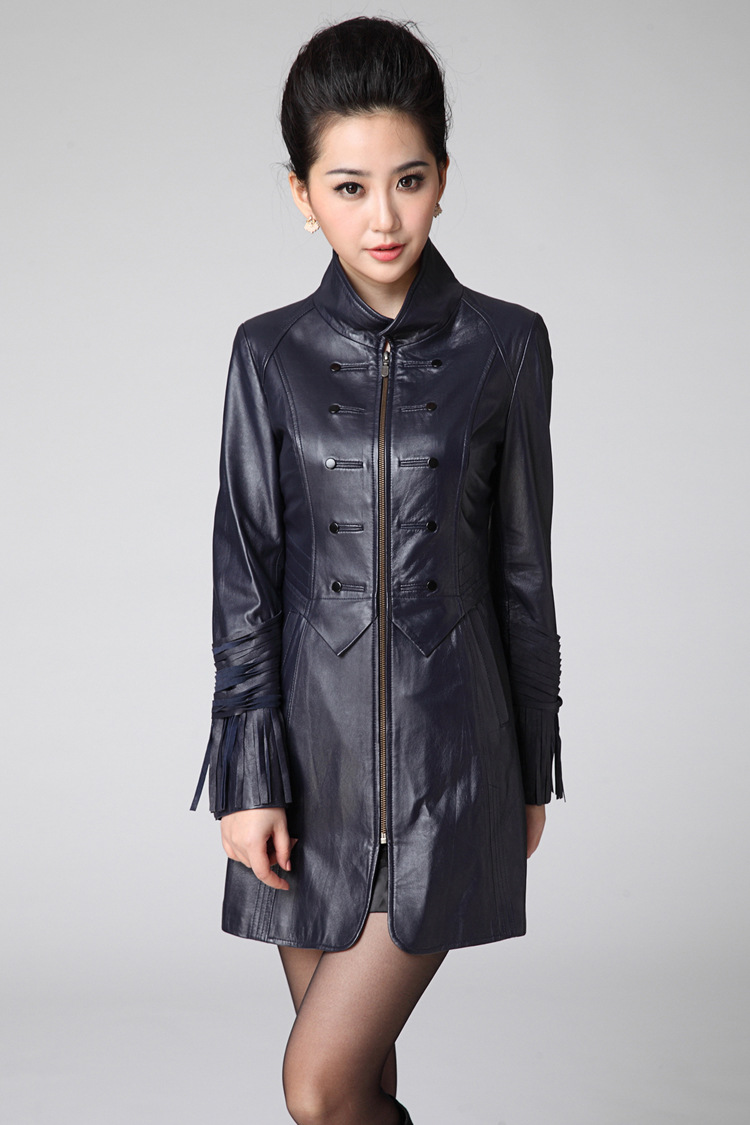 GOLEVI2013热销爆款 女式时尚休闲 真皮皮衣 中长款 品牌女装