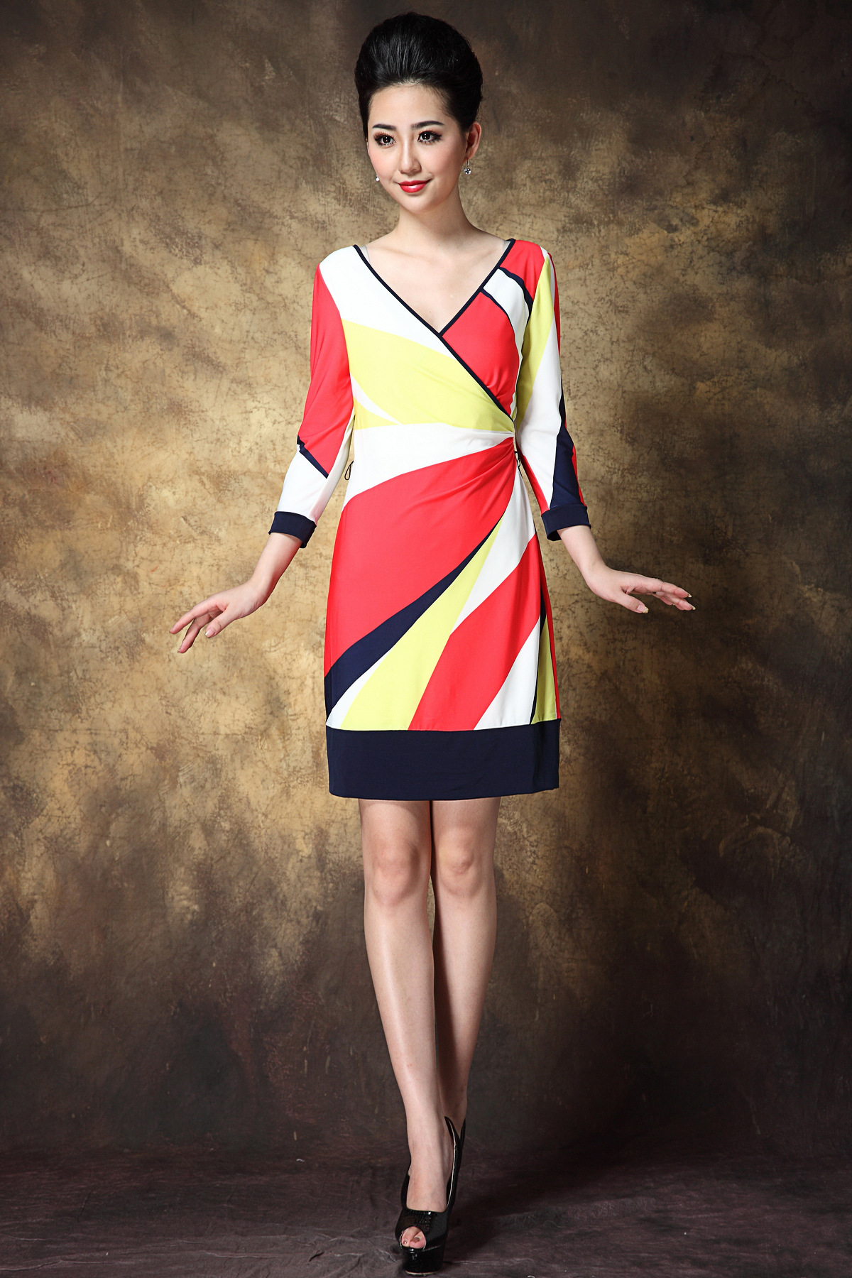 GOLEVI2013 新款欧美风 经典条纹修身连衣裙