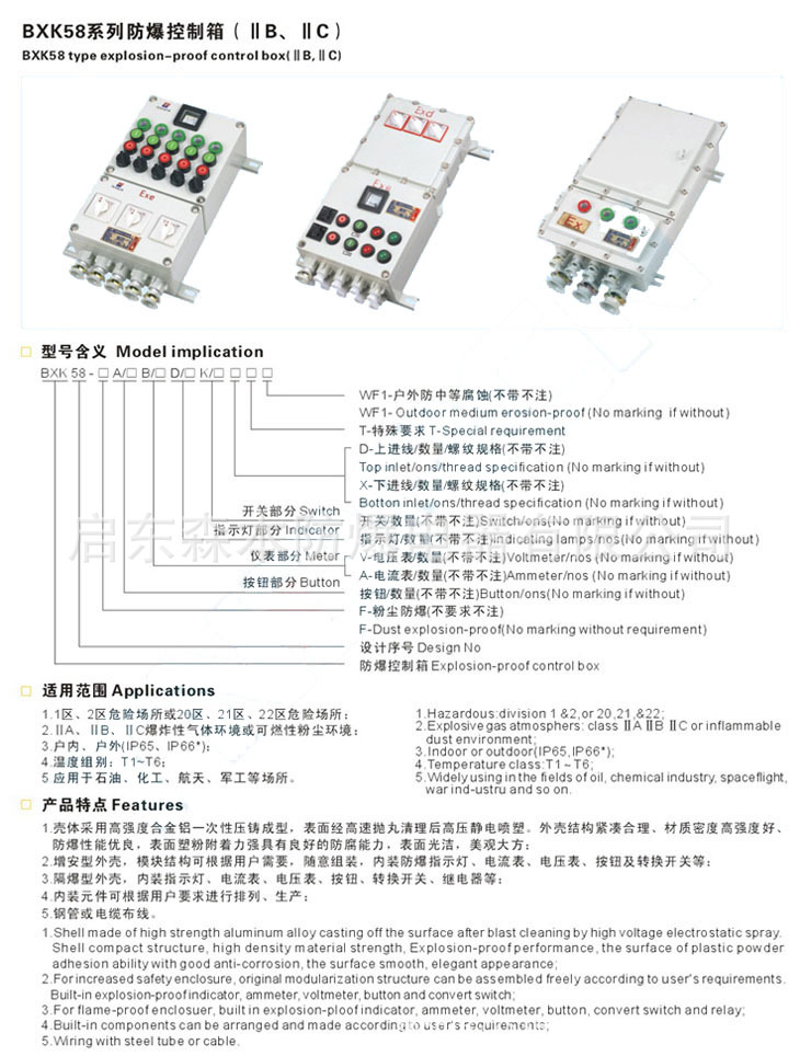 2、IIC类主体外壳采用增安型结构,内装的元件有按钮、控制开关、仪表等均为防爆元件;