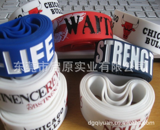 2.印刷硅胶手环:如特殊尺寸、加Logo需开模具,印刷手环分为多色丝印,单色丝印,多色套印,是一种做货比较快的硅胶手环。