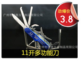 大刀、大一字螺丝刀、外六角螺丝起、开瓶器、十字螺丝刀、 木锯、锉刀、弯牙锯、中一字螺丝刀