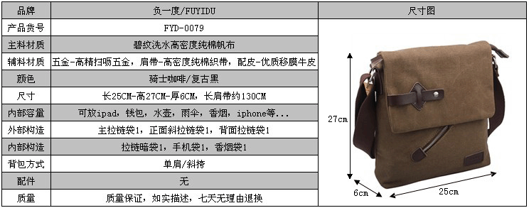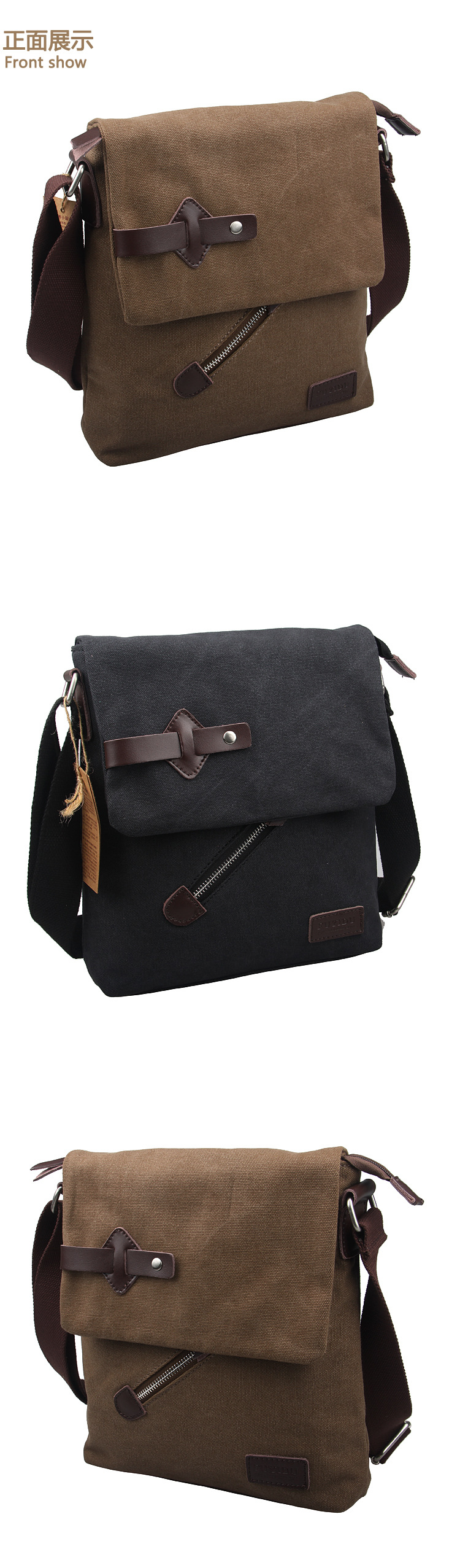 供应帆布单肩包 男包 男士斜跨包 纯棉帆布配牛皮