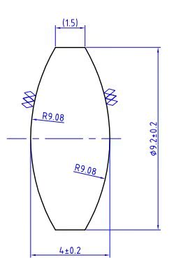 B2154型号 耐热玻璃材质,透光率极高,焦距9.5mm,直径9.2mm,双凸透镜,中心厚4+/-0.2。适用于灯类聚光,聚光系统等等.