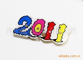 1、材料:塑胶,采用循环闪光集成电路,用红,兰,绿,黄,超高亮LED灯做发光源.接通电路后循环闪动,与产品构成一幅五彩缤纷的图案.
