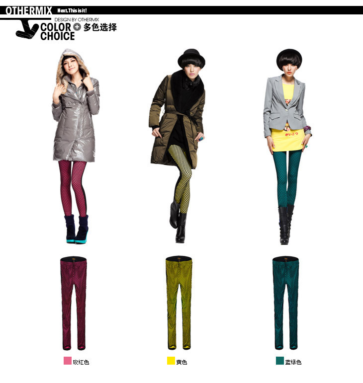 | 【名称】 | 最新款 时尚气质 潮女装镂空格子网纱拼接修身九分裤 打底裤 |