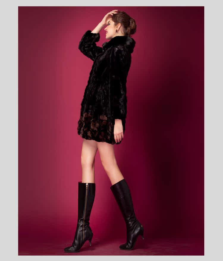 进口 貂皮大衣女款整貂 特价 带帽中长款水貂皮大衣整貂