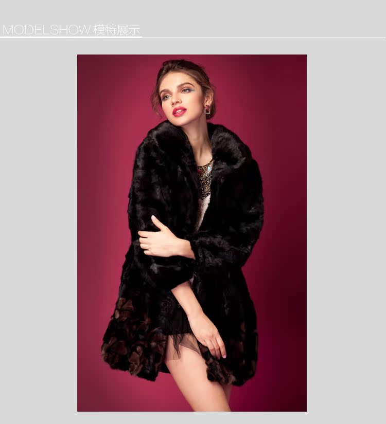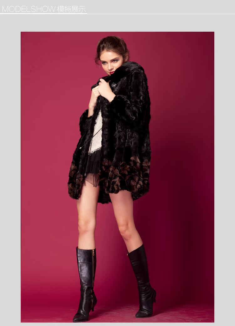诺谰 水貂整貂皮草拼貂长款外套 2013新品时尚裘皮大衣
