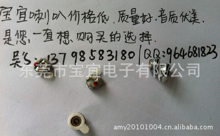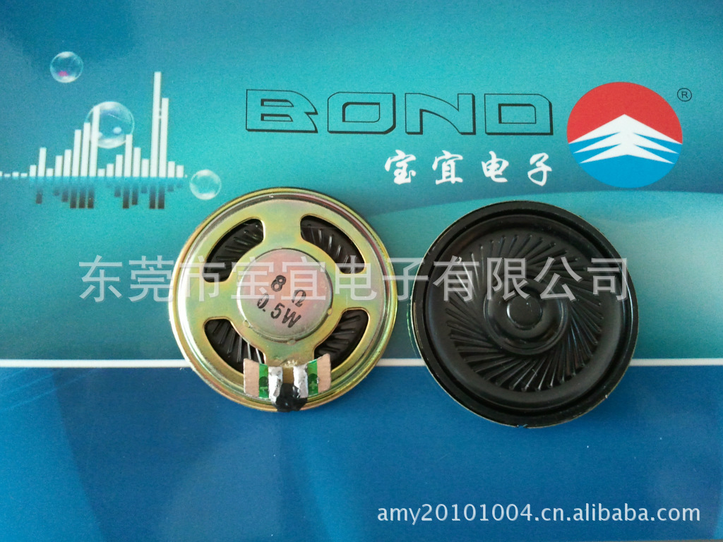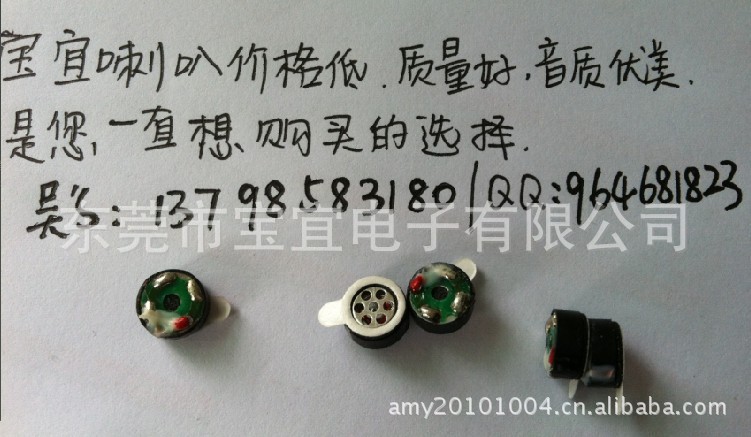 东莞宝宜电子公司专业生产05mm-50mm各种品牌耳机喇叭,20mm-57mm铁壳喇叭,用途:收音机、对讲机、玩具喇叭门铃喇叭等。(膜片:花膜、平膜)內磁、大磁等。