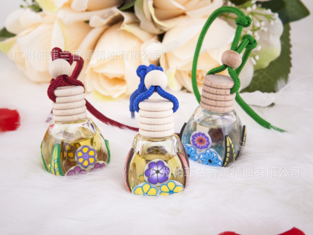 怡兰香汽车香薰C002采用进口德国榉木盖,简约的玻璃小瓶印上可爱的花图案,令整个挂件带来小清新的感觉。