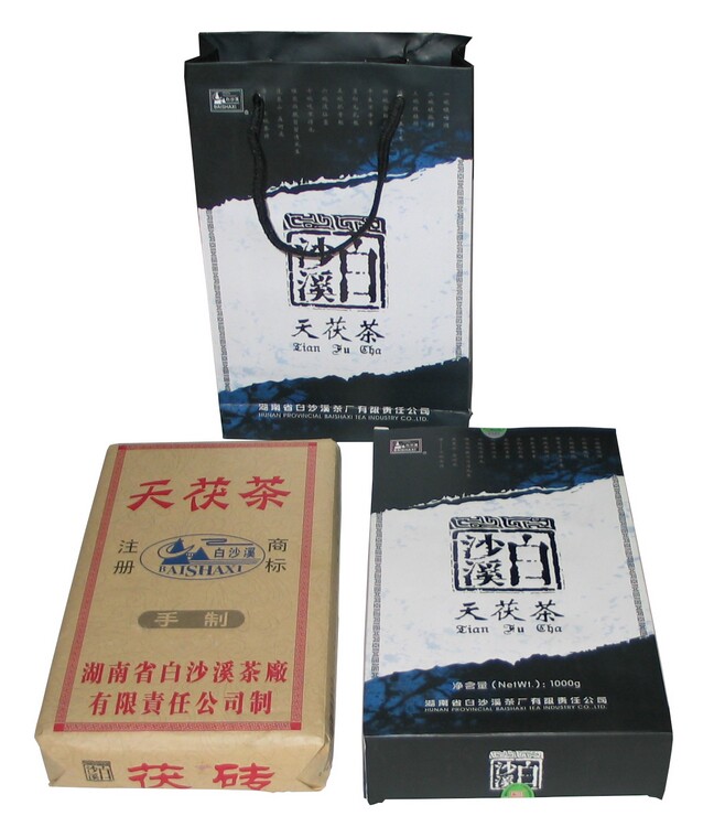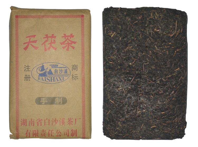 白沙溪之创新品种,用黑茶中制作天尖的的原料,用茯砖的制作工艺,故名天茯茶。该茶品在其独有的“发花”过程中,生成一种有益菌“冠突散囊菌”,从而产生一系列有益于人体健康的各类小分子化合物,使茶内金花生长普遍茂盛,形成茯茶滋味甘甜、香醇汤浓、无粗青气味之独特品质风格,长期饮用能够解油腻、助消化、有效促进新陈代谢,对人体有着极佳的保健和病理预防作用。