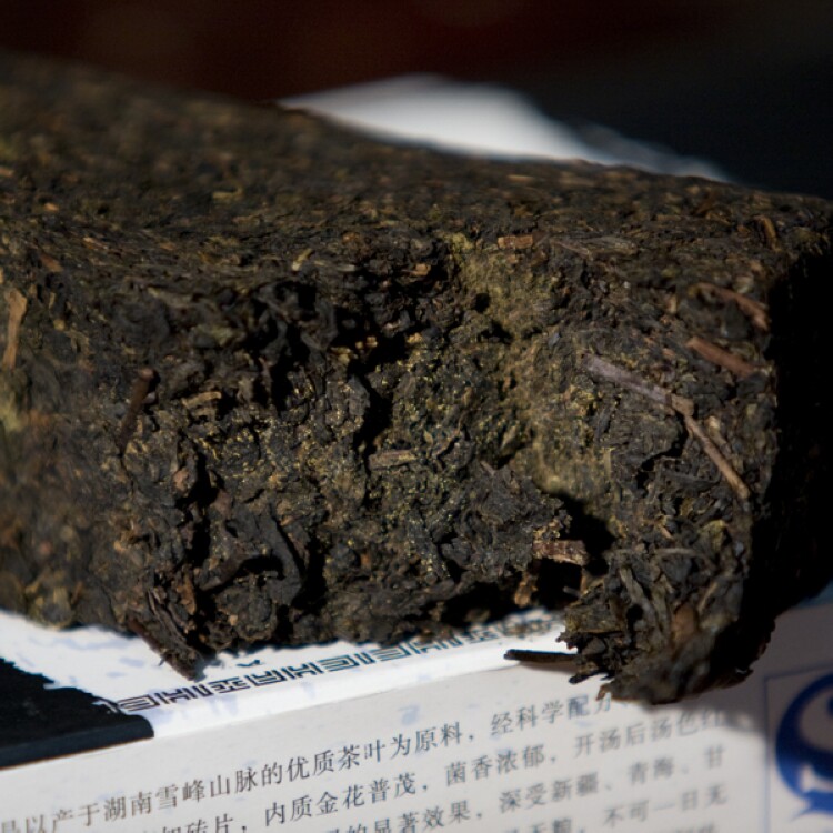 茯茶在其加工过程中经过了一道独有的“发花”程序,生成一种有益菌——冠突散囊菌”,它一方面吸收茶叶中的有效成分作为自身生长发育的营养,一方面通过自身的代谢,产生一系列有益于人体健康的各类小分子化合物,使其内里金花茂盛,独具菌花香和松烟香,茯茶的特殊口感和功效便由此而生,这正是它不同于其它茶类或其它黑茶茶品的独特之处。“冠突散囊菌”在业内俗称为“金花”。