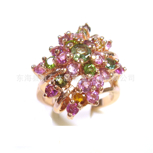 名称: 925银玫瑰金天然碧玺戒指【碧玺4X3MM ][重量:5.4克】