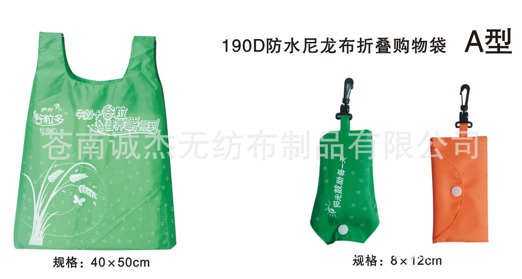 190DA型防水尼龙折叠购物袋定做厂家