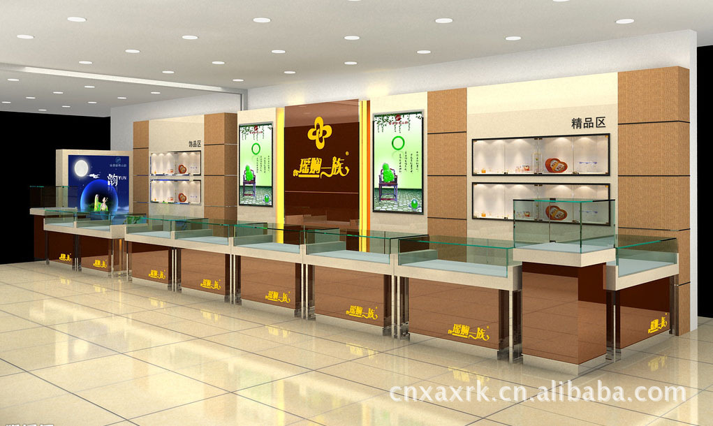 我们设计制作的珠宝展示柜 ,带有丰富的配件,可搭配实木、水晶板、亚克力、钢化玻璃、铝合金,灯具等,并且每个组件能够录活安装,多种颜色搭配。丰富的选择可以让您的珠宝店装修设计效果更加满意。