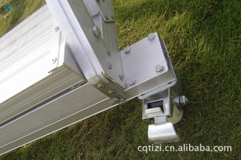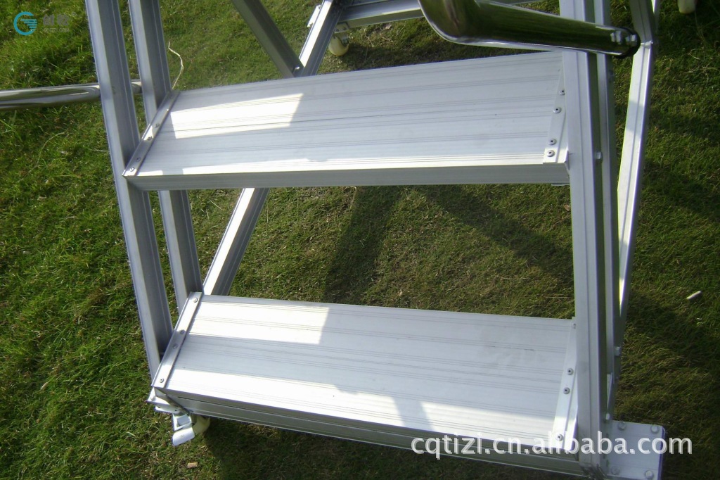平台梯身使用全铝合金,踏步和平台采用防滑板制作.