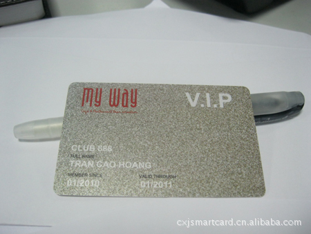 VIP卡工艺:PVC卡材料制作的VIP卡以色彩鲜艳、携带方便、耐高温、不易损坏、防水等特点。VIP卡按种类可分为光面VIP卡、哑面VIP卡、磨沙VIP卡、透明VIP卡,VIP卡面可附加烫金/银、凸码、条形码、个性码、平码、磁条、防伪标签、打孔等工艺。VIP卡按规格可分为标准卡和非标卡,VIP卡的标准规格为85.5*54*0.76(mm),非标贵宾卡的尺寸