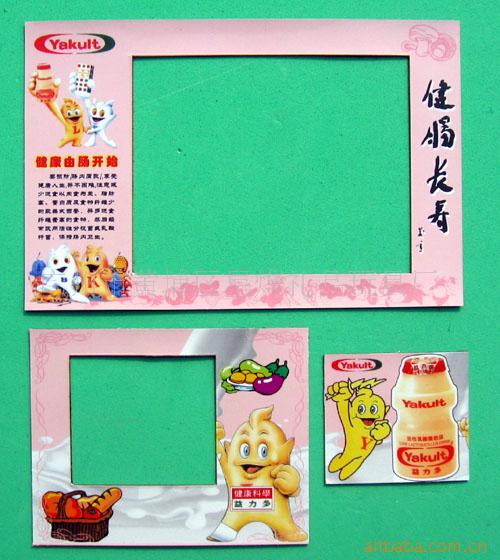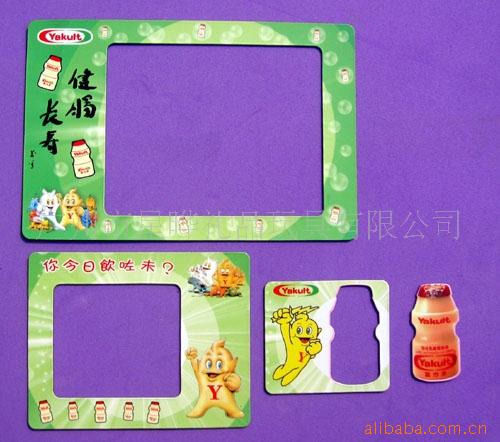 5)磁性相框:采用软胶磁铁裱铜版纸彩色印刷腹膜,中间冲切相框制作而成。或是按照客人要求制作双层相框,PVC相框,纸板相框等各种材质的相框。